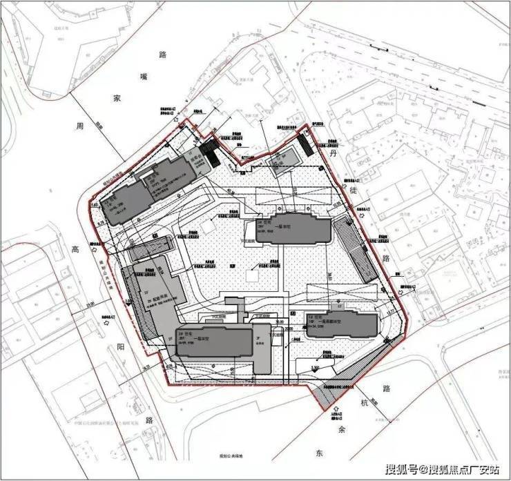 动线方面,社区为全人车分流,机动车出入口位于东侧丹徒路和西侧高阳路上.人行出入口位于南侧的东余杭路上.
