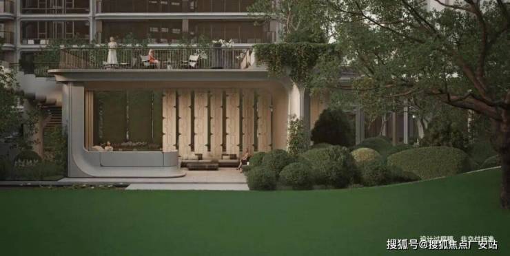 项目入口“孔雀廊”取意路易斯·康的金贝尔艺术馆拱形语汇,融合礼查饭店“孔雀厅”的优雅形态,成为历史与当代交汇的门廊;创新双层廊道复合景观体系,让归家之路穿行于层层绿意与光影之间;中央草坪灵感源自英国达西庄园,喷泉与几何花园交织,营造“城市庄园”的诗意尺度.更有地上悬浮会所Symphony会客厅,将健身、艺廊、私宴与花园融为一体,于阳光与江景之间,奏响一曲关于生活的协奏曲.