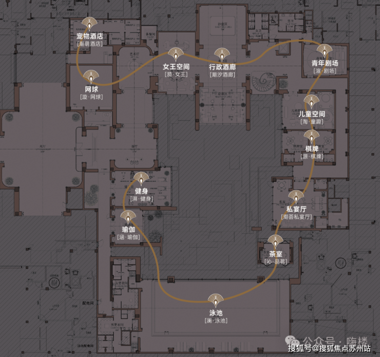 男业主的行政酒廊、私宴厅、恒温泳池、健身房、棋牌室、茶室;