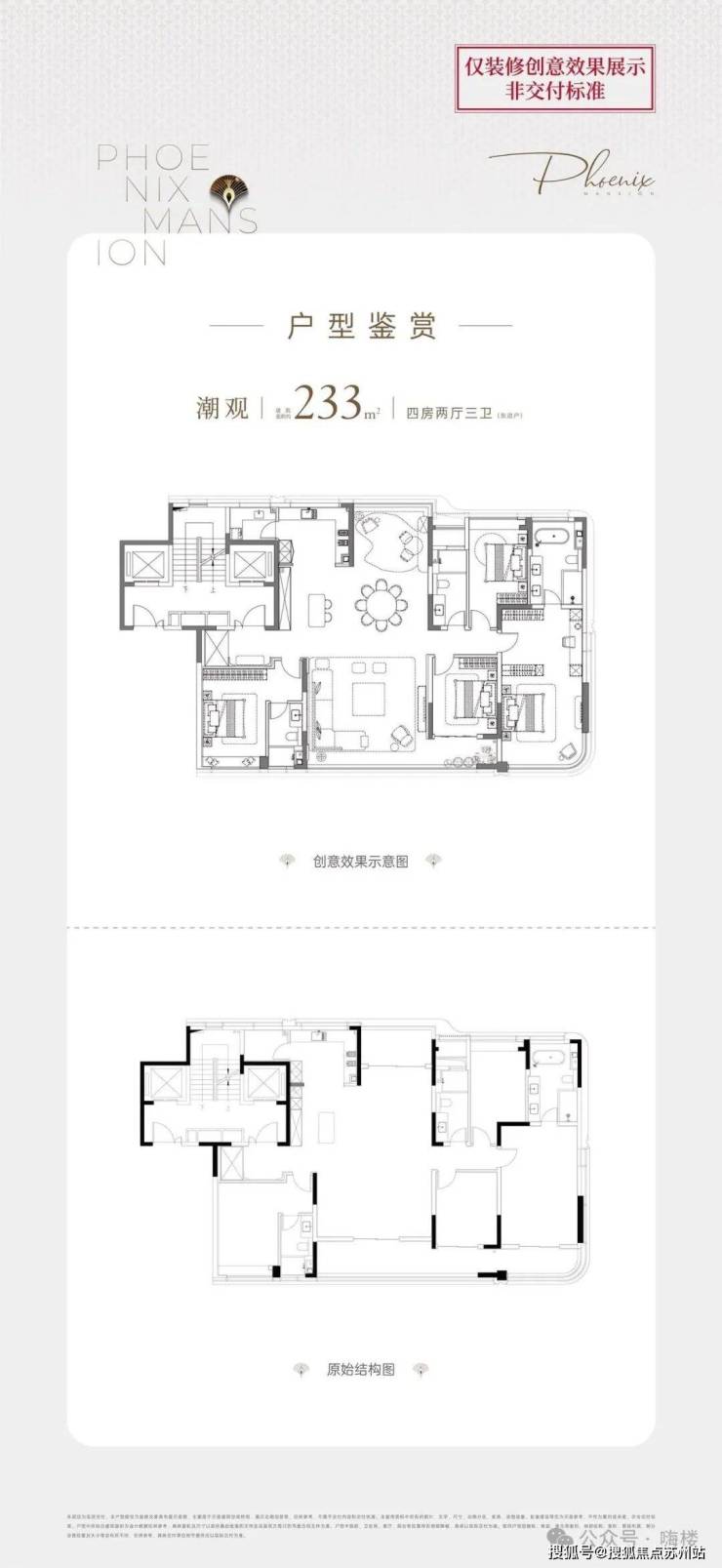 233㎡四房两厅三卫 ,两边户型差不多,几乎属于镜像的关系,特别喜欢这个曲面观景设计的,就冲01室!