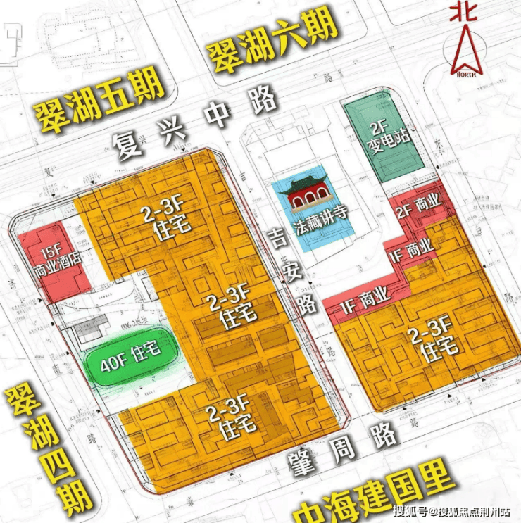 根据公示,项目西半部分096-2地块内规划1幢40F超高层住宅、14幢2-3F风貌别墅,和1幢15F商业酒店、1幢3F商业楼.酒店、商业位于地块西南角.