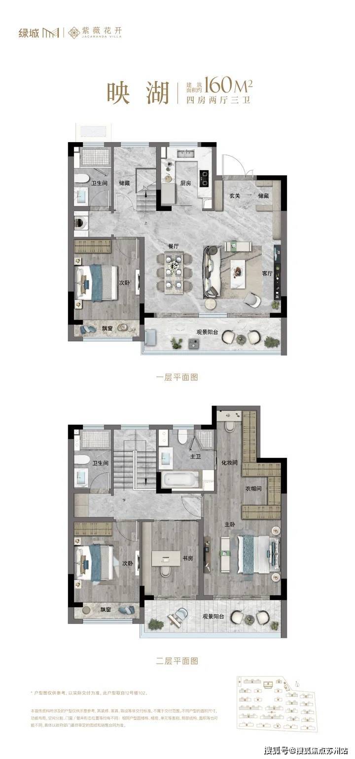 主力户型为160㎡、180㎡、220㎡,均为2层叠墅。