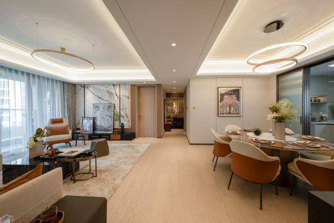 在景观打造方面,项目风格是新海派风格,特点是延续海派文化的典雅格调。整个社区采用“一环”“两轴”“三园”“六院” 的空间结构,展现现代海派的精致人居空间。
