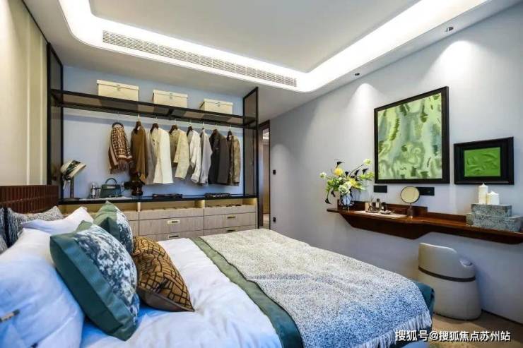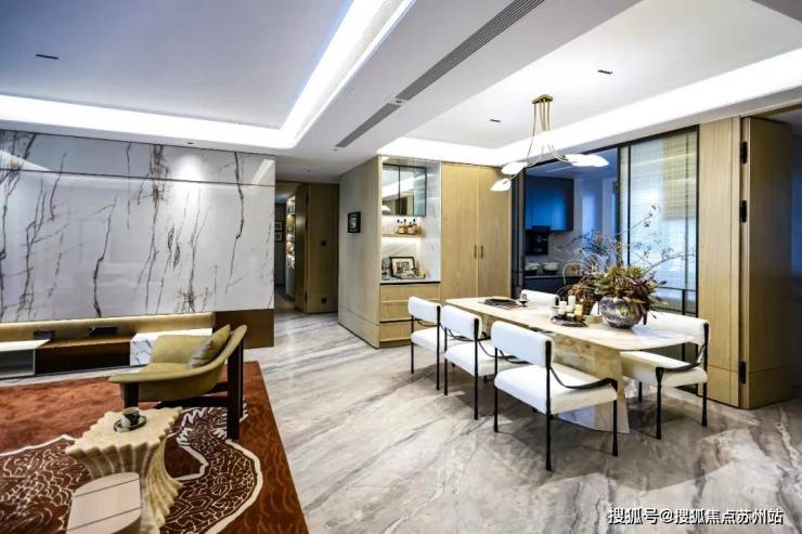 上海闵行安高申陇院售楼处电话☎:400-8123-664(预约看房热线)客厅和卧室无主灯设计,再叠加弧形吊顶,既打造了柔和、温馨的氛围,又能保证较好的视觉空间感。