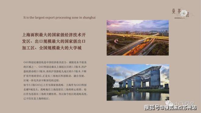 Itisthelargestexportprocessingzoneinshanghai上海面积最大的国家级经济技术开发区、出口规模最大的国家级出口加工区、全国规模最大的大学城G60科创走廊沿线是中国经济最具活力、城镇化水平最高的区域之一。G60科创走廊从上海松江区的1.0版本,到沪嘉杭联动的2.0版本,再到沪苏浙皖九地区的3.0版本,不断扩容升级的背后,正是长三角地区科创驱动、融合发展、区域一体化共识不断深化的过程。如今3.0版G60已上升为国家级战略。上海作为G60科创走廊9城龙头,战略地位上海连接长三角的核心纽带,松江作为连接长三角的关键纽带,所以如今松江的战略高度,已不仅仅是上海的松江。