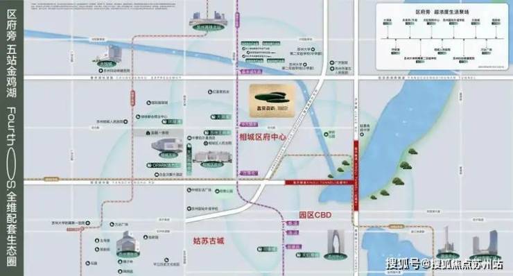 五站金鸡湖三大CBD势能交汇于此依托相城主城天然的地理优势,以环线快速路、隧道、地铁等立体交通主动脉为引擎,构建出相城区府中心、园区金鸡湖商务区、姑苏古城三大CBD交汇的“中心”坐标,并将全域高端资源纳入FourthOS.四代生态系统。