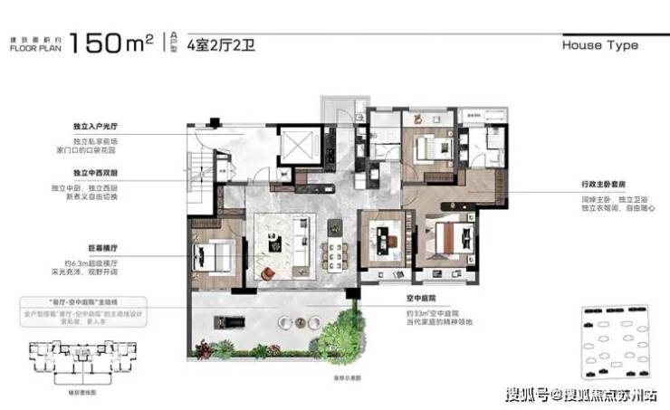 南向L型空中庭院巧妙衔接卧室,打造“厅卧同质”空间,赋予主卧更多功能性;同时,前庭后院布局,北向特赠超大公共平台,预留出无限可能的生长空间,为未来生活注入丰富多样性与不断涌现的新奇体验。