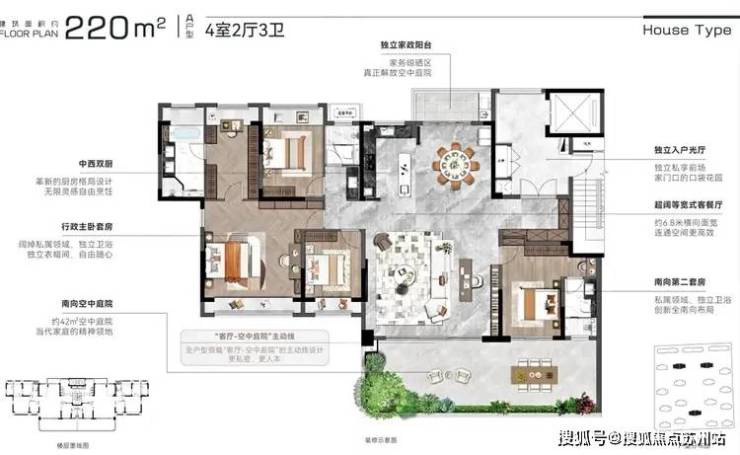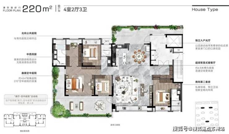 建面220㎡户型与185的方式差不多。