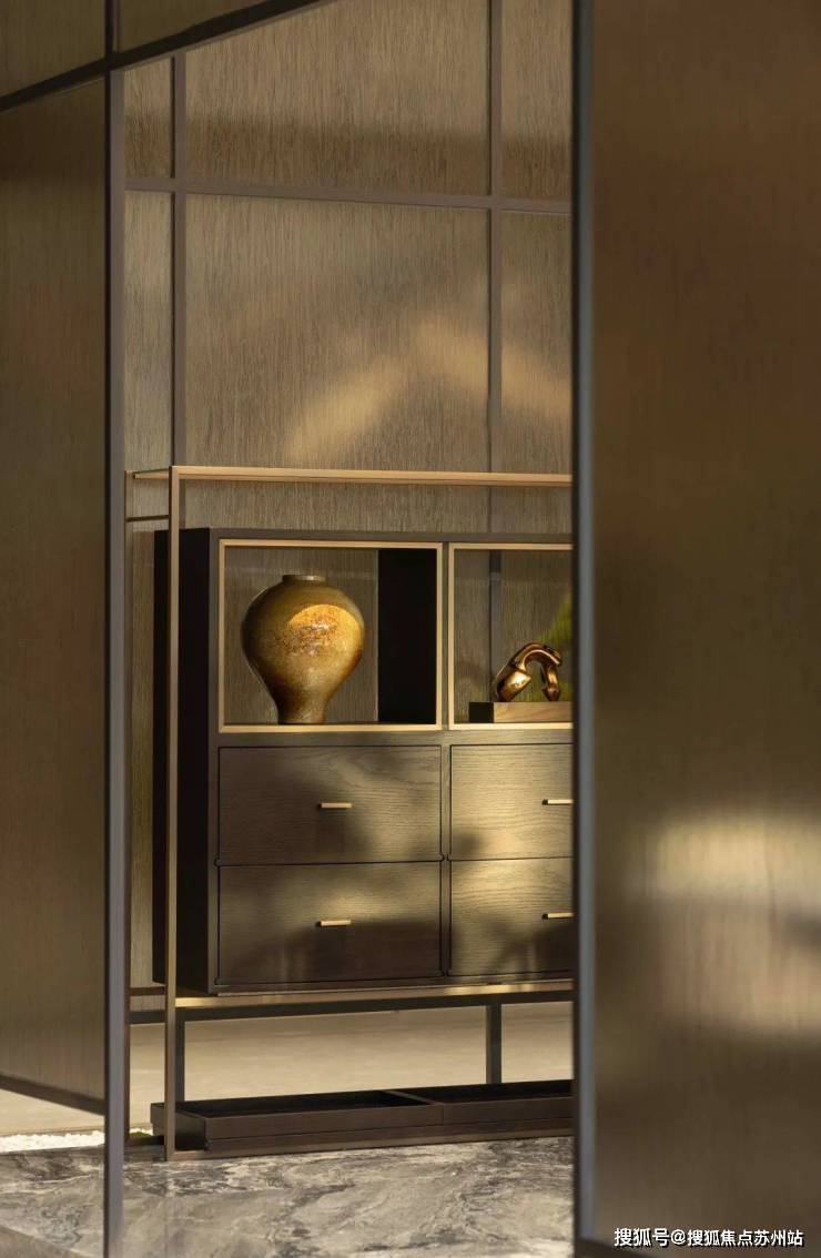 所谓“一方院落,四季更迭”,可雅集于此,逸游、揽胜、静观。以金属与玻璃材质组合重新诠释东方屏风,在这人文诗意的雅筑,踱步其间,在虚实之间为物理空间赋予灵动的东方诗意。