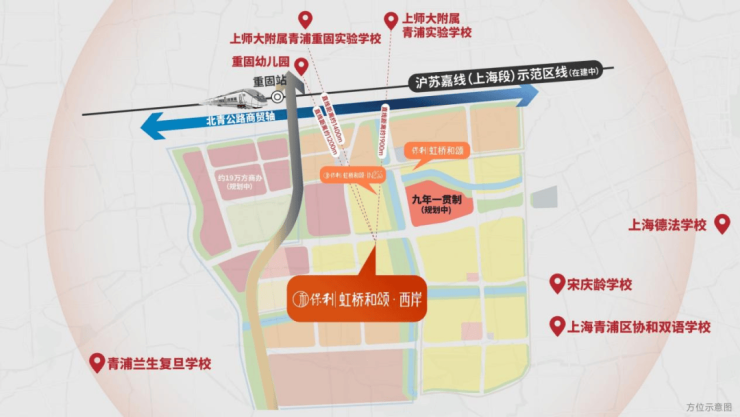 而保利虹桥和颂·西岸,直线距离约600米即可抵达示范区线重固站(在建中),3站虹桥枢纽、5站华为基地、7站张江,就坐落在这张网络的“黄金夹角”,成为牢牢嵌入大虹桥发展规划重要节点上的“示范线上示范区”。