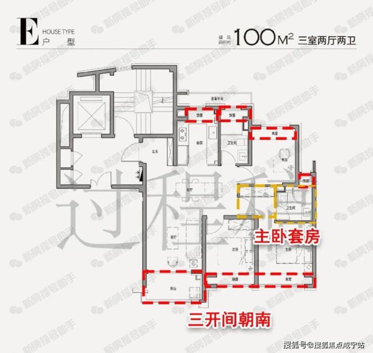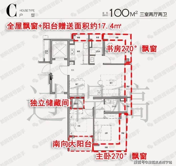 3、空间升级:超配双270°飘窗格局!市面上很少会有主卧及书房均设计270°飘窗的百平户型,稀缺性不言而喻~