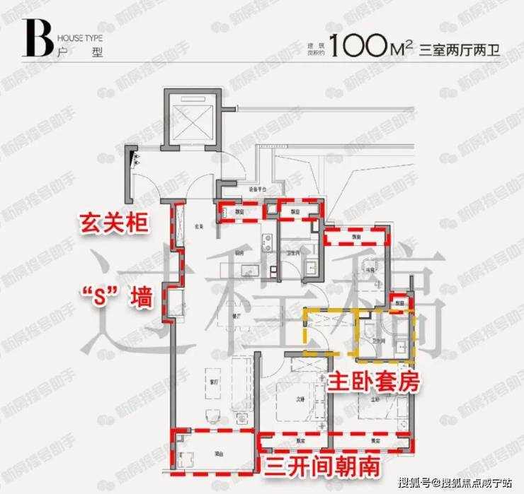 社区仅2幢住宅,是相当难得的精致社区,圈层纯净!目前样板间已开放,先来看看户型设计,可以说是相当优秀!