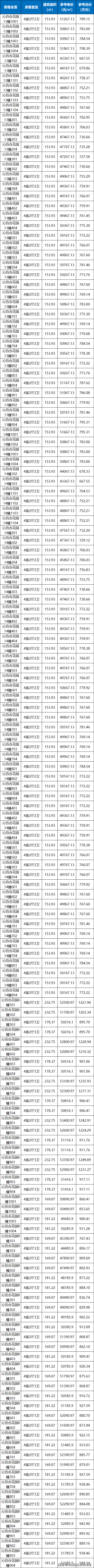 一房一价表如下↓