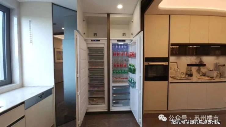 做到每个户型配置都一样,美诺六件套(燃气灶、油烟机、蒸烤一体机、洗碗机、单冷藏、单冷冻冰箱),加上厨房空调、全屋地暖、三玻两腔Low-E玻璃等配置,直接对标1500万+豪宅。