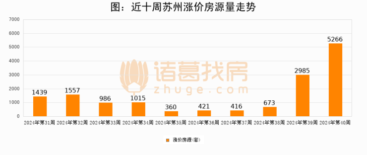 从调价房源来看,第40周苏州涨价房源5266套,较上周上涨76.4%。与此同时,40周涨价房源占比提升1.23个百分点,业主信心持续恢复。