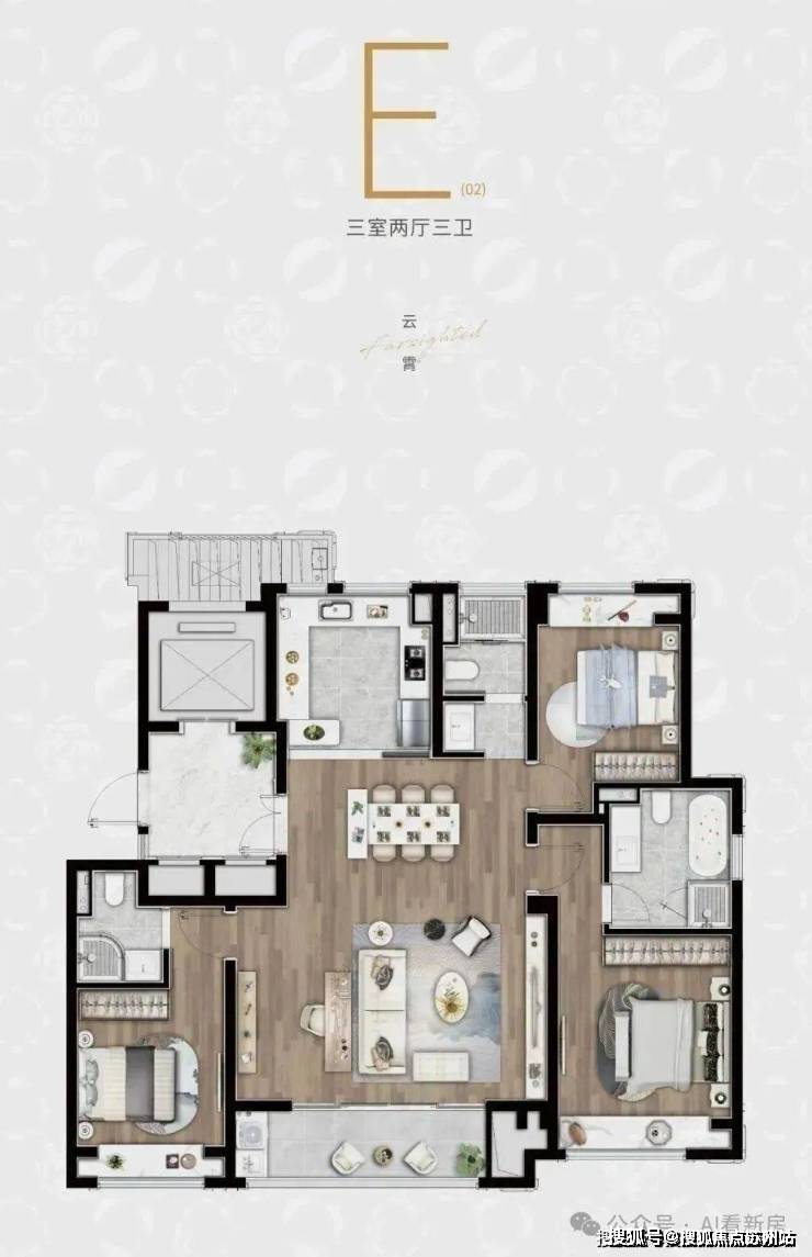 E户型:建面约140㎡3房2厅3卫▼陆家嘴.锦绣云澜售楼处电话:400-8228-664售楼处电话✔✔