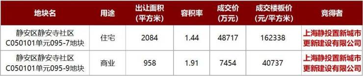 新静安地块0溢价成交,老静安地块163轮竞价才落槌,楼面价超11.4万/㎡。