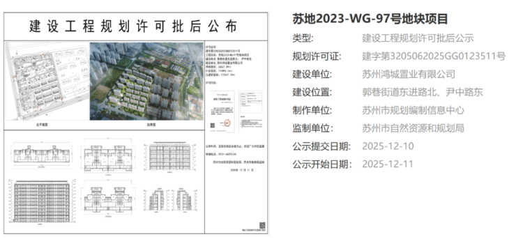 在拿地一年半以后,位于郭巷板块的天鸿伟业&吴城置业97号地块项目规划批后发布了!