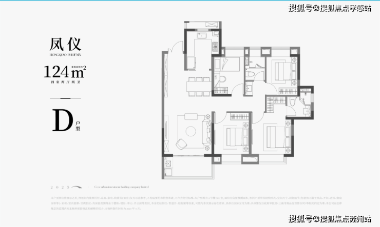 中交凤启虹桥官方通道|📟 项目咨询中心:400-8123-664👑👑 D户型 | 建面约124㎡4房户型图▼