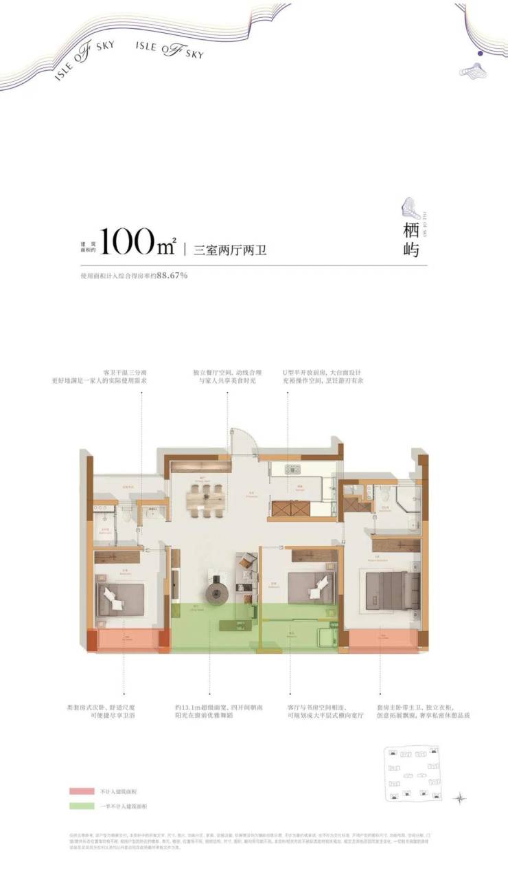 建面约100方户型: