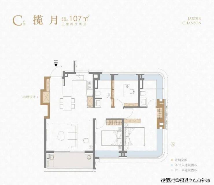 建面约107㎡的户型则刷新了我们对百平三房的认知