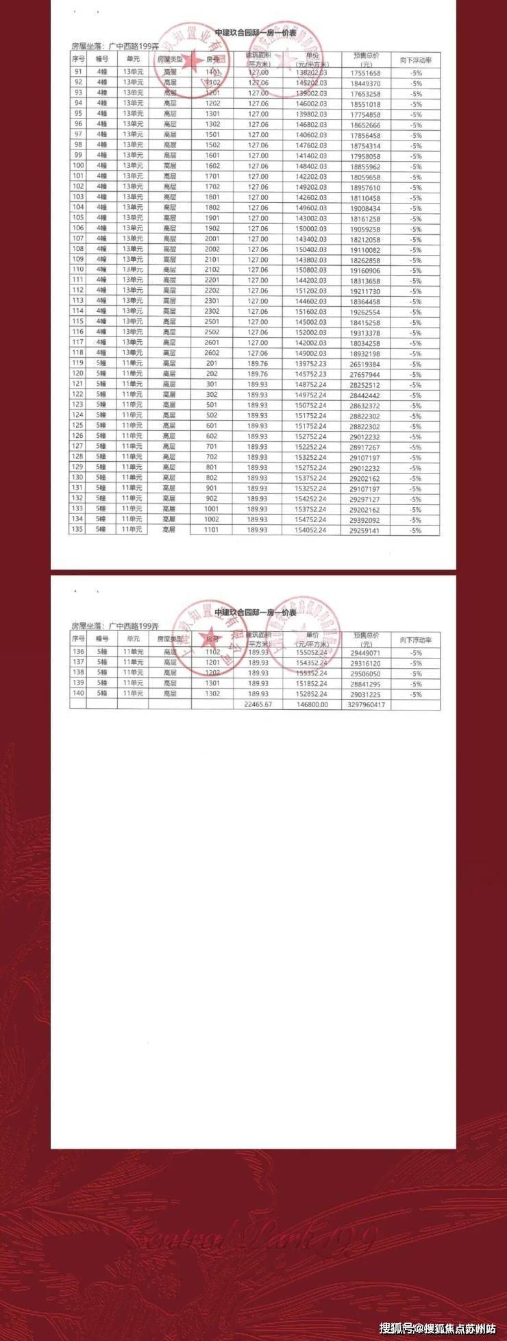 一房一价表如下: