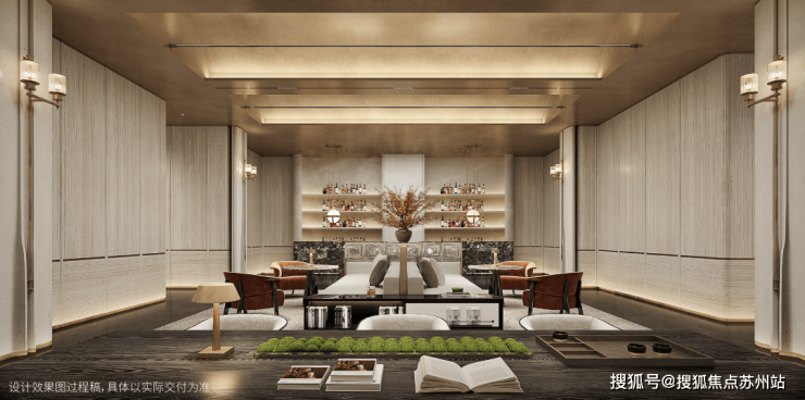 以休闲交流、棋牌书法展示为主题,配有讲座 分享室、品茗水吧、书法展示等,未来业主可于此举办各种节日活动、生活分享会、艺术展览等,增进邻里之间的交流与互动。