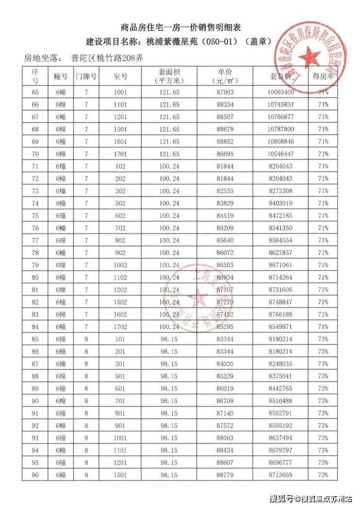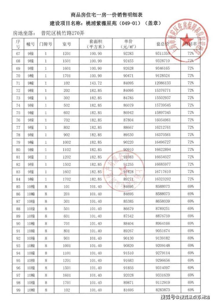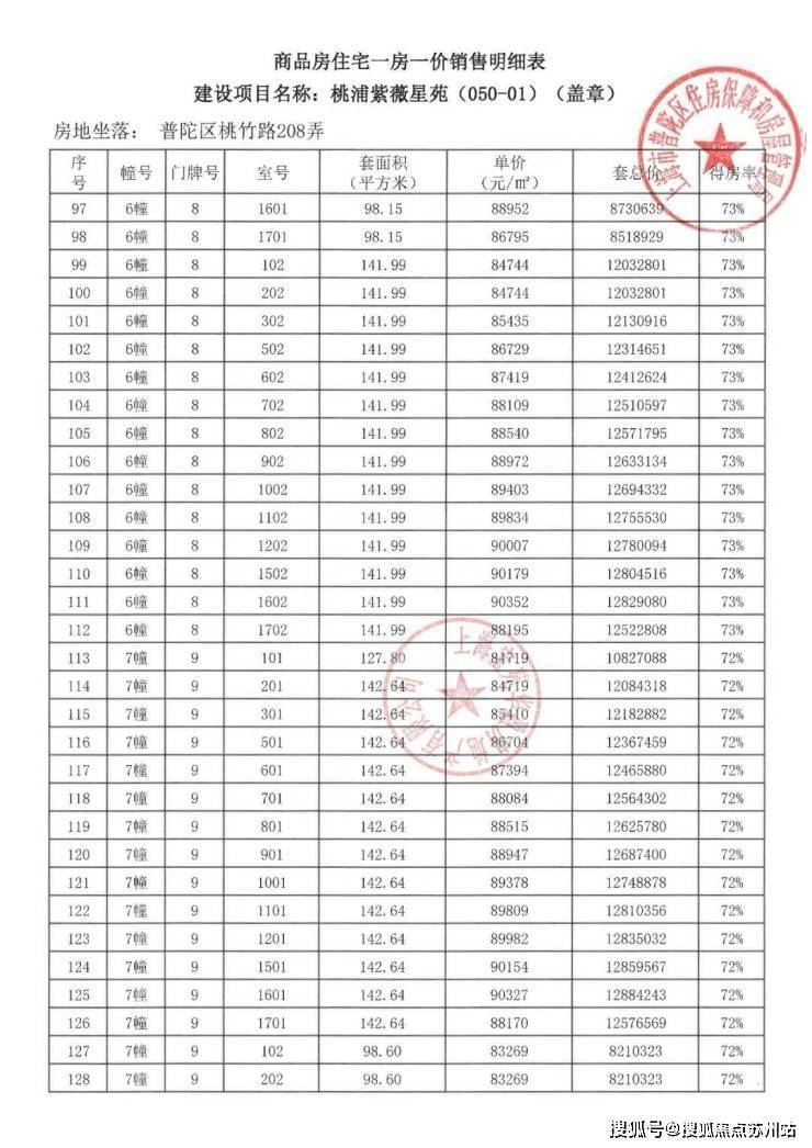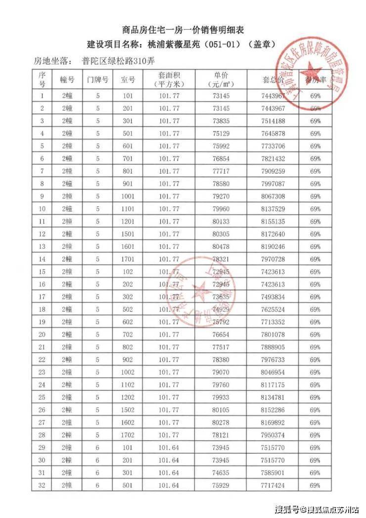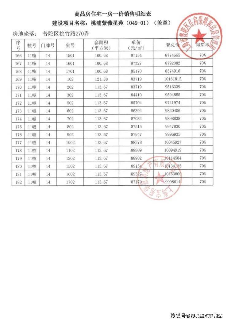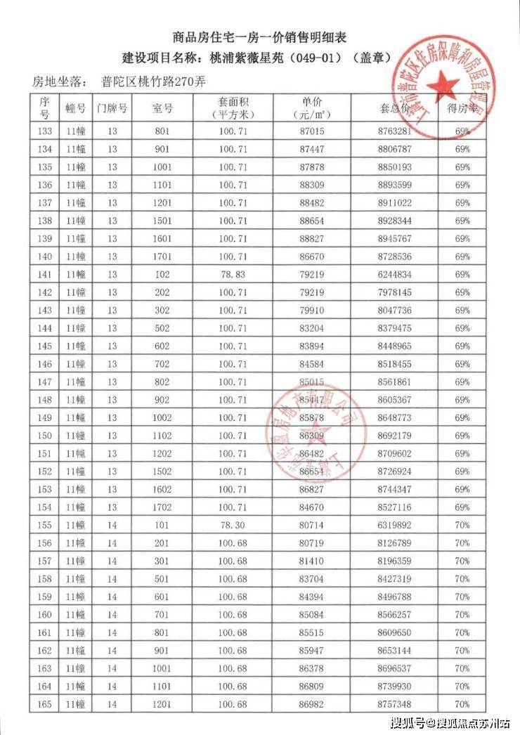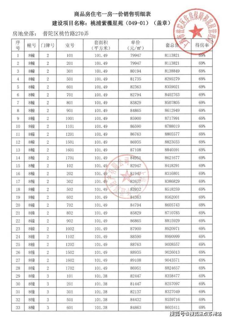 项目一房一价表▼