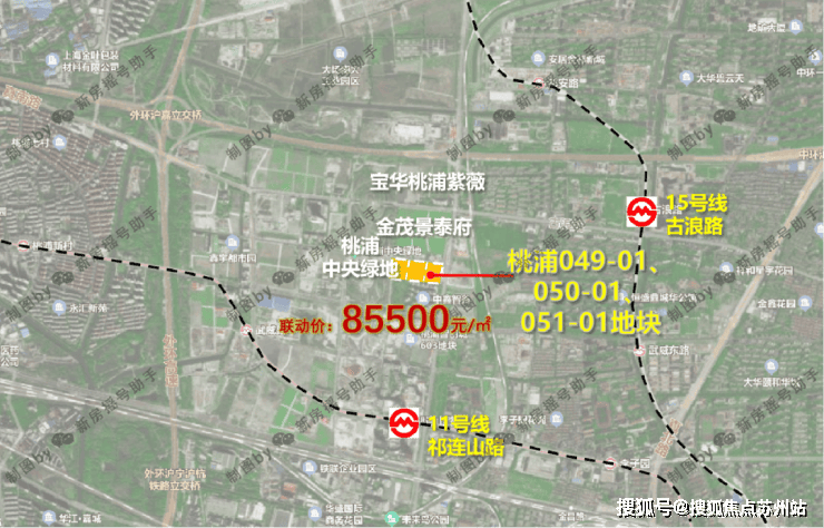 2023年8月,上海二批次土拍,宝华&东苑以总价328800万元成交普陀区桃浦科技智慧城(W06-1401单元)049-01、050-01、051-01地块,地块出让面积30126.9㎡,容积率2.5,溢价率4.05%,楼板价43655元/㎡,房地联动价85500元/㎡。
