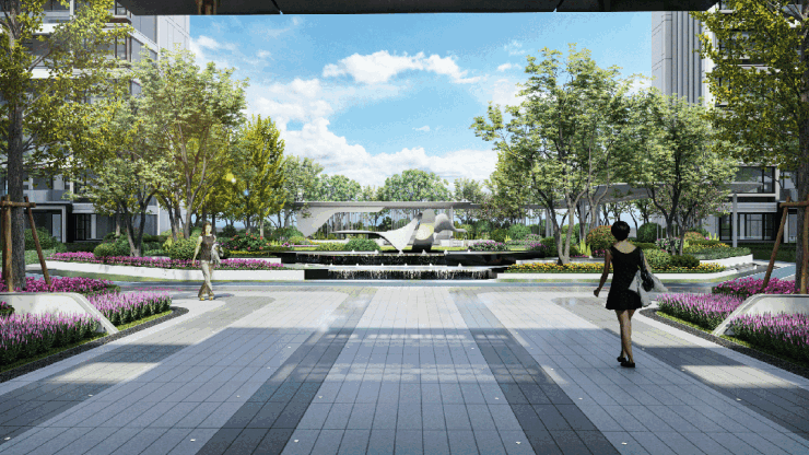 就是贯穿住区东西约260米的景观主轴,步入其中,移步间全季节花木交替上演,四时美景尽收眼底。