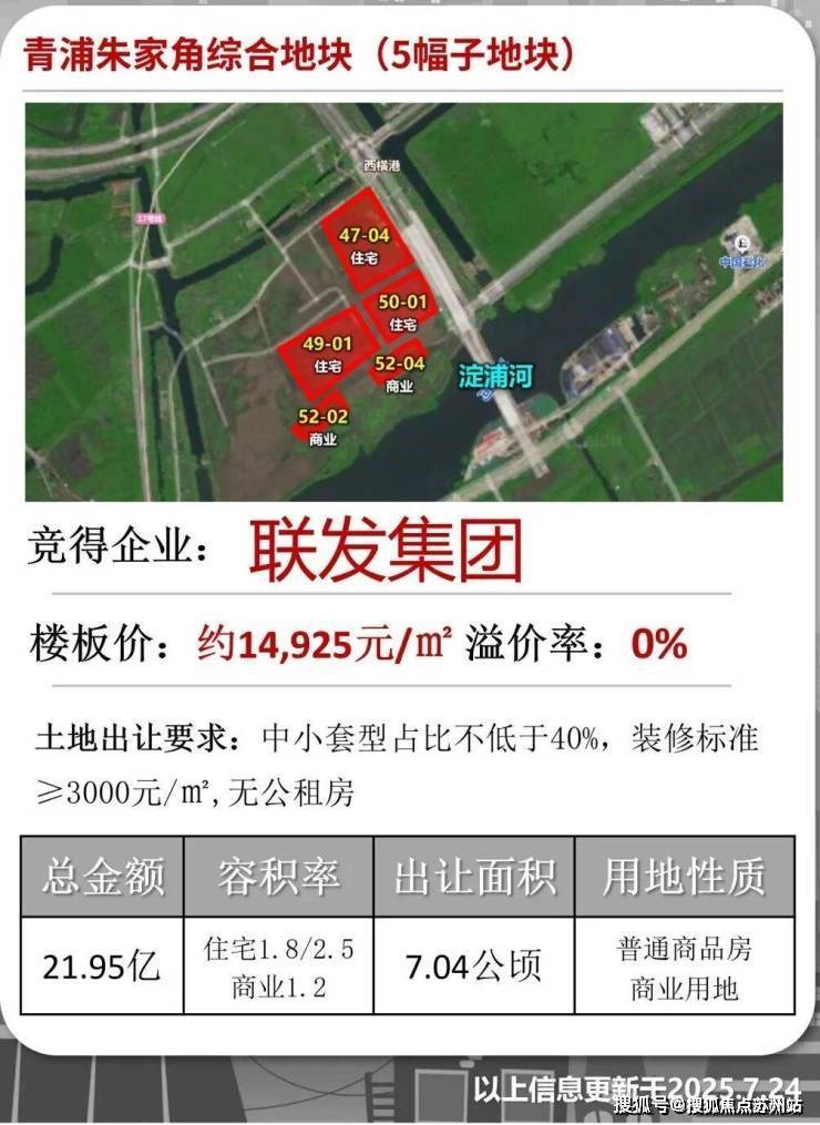 今年7月24日,联发以底价21.95万元竞得青浦区QPC10004、QPC10005单元47-04、49-01、50-01、52-02、52-04地块,楼面价14925元/㎡。