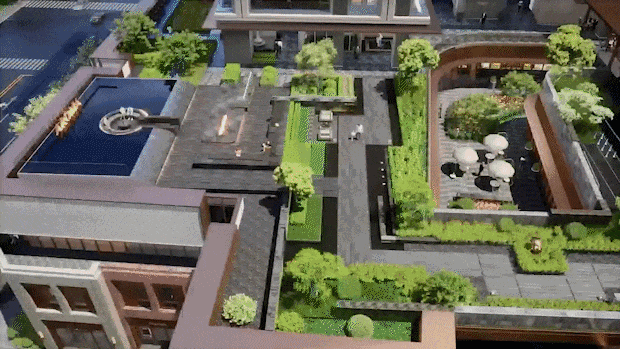 ▲露香园·天誉屋顶花园式入户层效果示意图,以实际交付为准