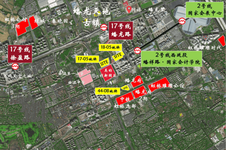 宝业拿下的徐泾17-05地块,位于2号线西延伸线的蟠祥路·国家会计学院站附近.