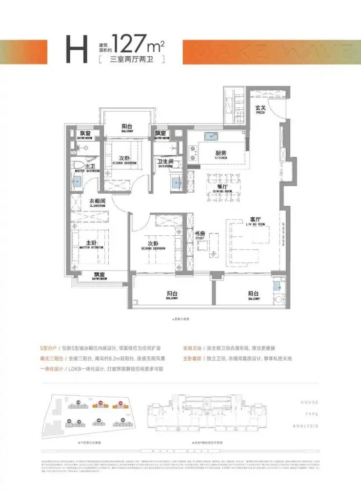“南向双阳台+南北双飘窗”,构筑真3房户型!