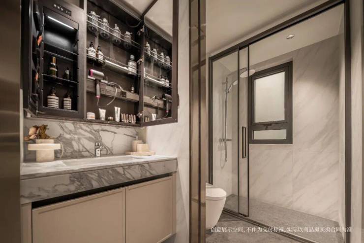 卫生间收纳也是相当出色:上海松江招商时代潮派售楼处电话:400 8123 664 (预约看房热线)