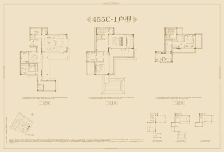 藏品独栋(约455㎡):独创“一宅七院”,归家院、观景院、品茗院等层层递进,满足世家大族的礼序与雅趣。