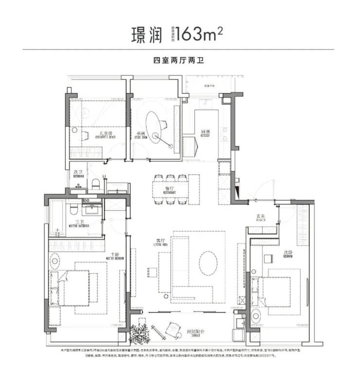 建筑面积约141-163㎡精装四房,LDKG一体化设计,超尺宽幕阳台,三大件齐备,甄选品牌打造精质空间,南区尊席时代献映。