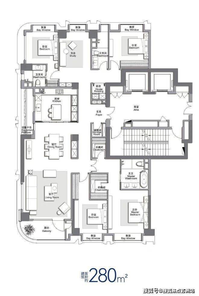 ✔建筑面积约280㎡,内环难有敌手的全功能性户型.