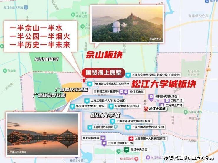 核心地段,静享自然与繁华的交织海上原墅位于松江新城核心板块,这个区域拥有得天独厚的生态资源,是自然与城市完美融合的典范。项目西侧一路之隔便是广富林文化遗址与广富林郊野公园,推窗即见绿意盎然的美景,辰山植物园、佘山国家森林公园、月湖雕塑公园等自然景观环绕,仿佛将整个松江的绿色肺腑纳入怀中,为居者提供了一个静谧而诗意的栖居环境。