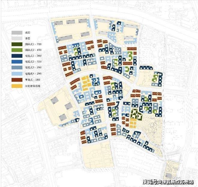 其中新增商业量为10543㎡,历史建筑活化为5900㎡,文保单位活化为5228㎡;具体分布如下: