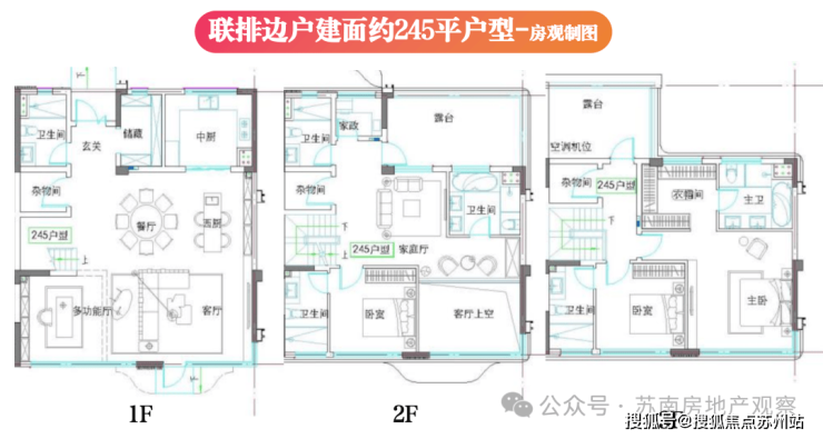 联排院墅户型:中户195㎡、边户245㎡