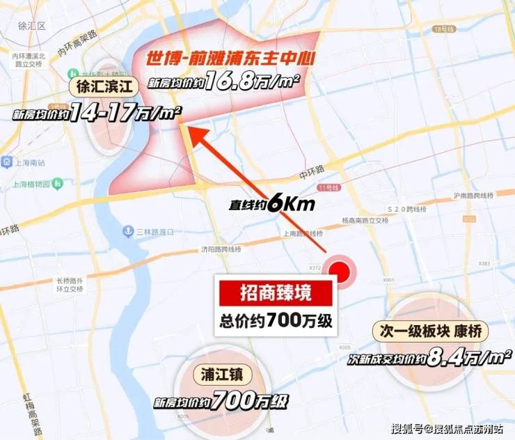 招商臻境位于浦东金色中环南部片区,直线距离陆家嘴、徐汇滨江等产业高地直线距离均在12公里以内,直线距离张江城市副中心仅约10公里,直线距离浦东新贵前滩中央活动区仅约5公里!可谓给到浦东700万级购房者千载难逢的置业机遇!