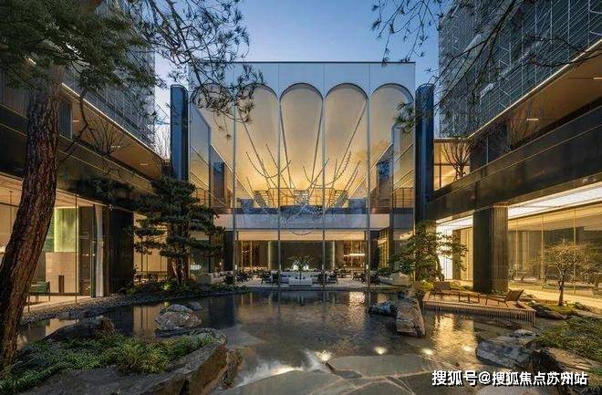 再往里走,穿过一条户外光廊,还能看到垂直落差约6.6米的下沉式庭院,别说是绿城体系内,就是整个杭州住宅圈里都不多见,让业主足不出户就可以享受到自然山水的风光。