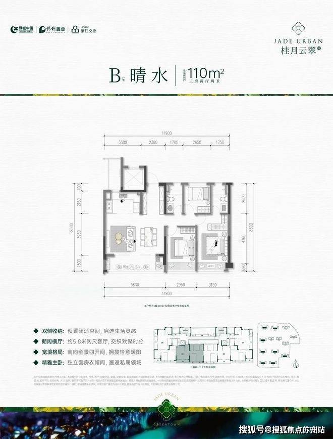 近11.9米的“独栋级”南向面宽,约5.8米的双开间“跑道级阳台”,每一个细节都是为了获取更多的阳光。