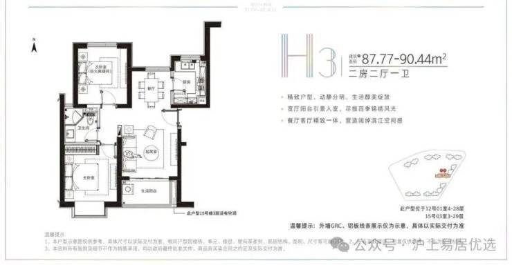 建面约78-91.22平米的小户型,两房两厅一卫的格局,非常适合年轻刚需家庭上车。