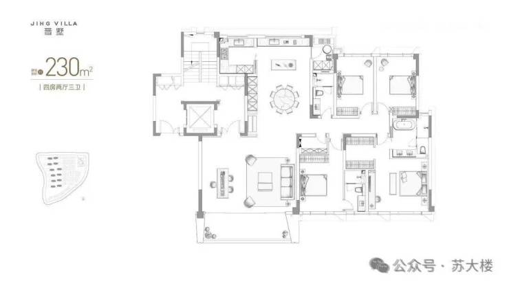 230㎡4房3卫、超2米大进深阳台、新加坡经典全屋收纳、超大横厅、约5米面宽主卧、超90%得房率…