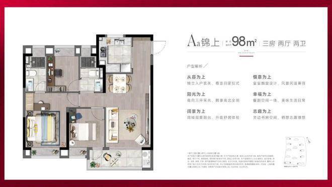 产品方面,项目 主推建面约88-98㎡精装3房,功能性和品质感兼具。