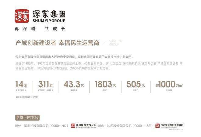 深业集团是深圳市人民政府全资拥有,深圳市国资委直管的大型综合性企业集团,成立于1983年,1997年正式在香港联交所挂牌上市。