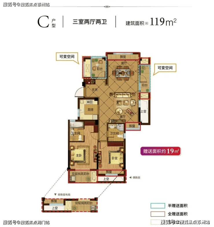 当然,也有供刚需购房者“一步到位”的四房户型——119㎡,其中可变空间也有约19㎡。对于刚需购房者来说,既能满足两代人居住的需求,又有足够的空间来享受改善生活。更重要的是,119㎡的房源,最低总价仅250万元起。