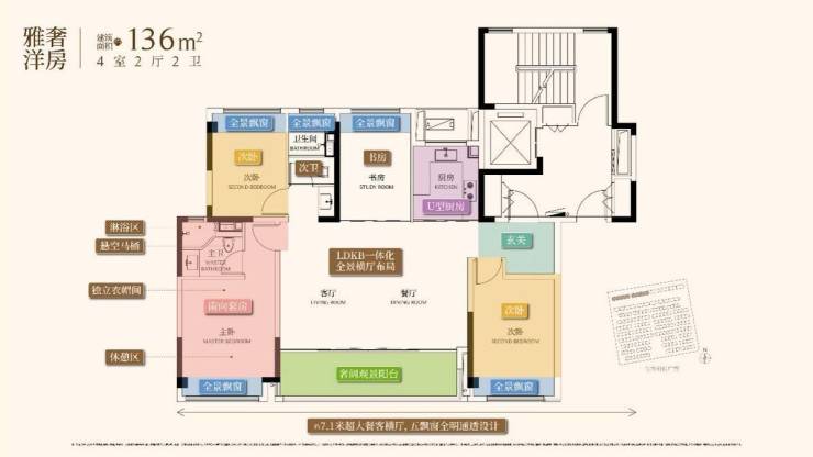 约7.1米超大餐客横厅,搭配五飘窗设计,引光纳景,营造全明通透的室内享受。